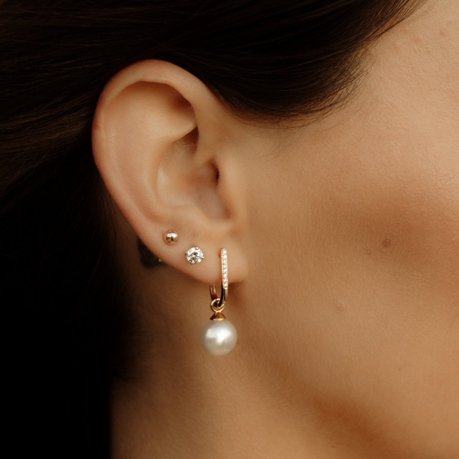 These hand-finished hoops can be worn alone or paired with detachable pear diamond or pearl drop enhancers, allowing you to transform your style with ease.