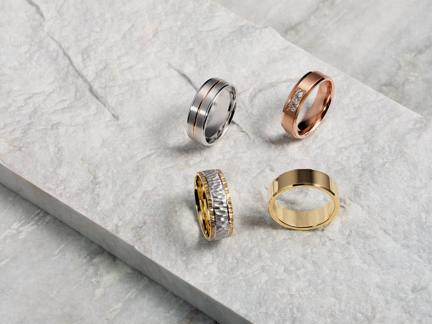 Mens Weddings Bands, Platinum, 9kt and 18kt Gold and Black Carbon