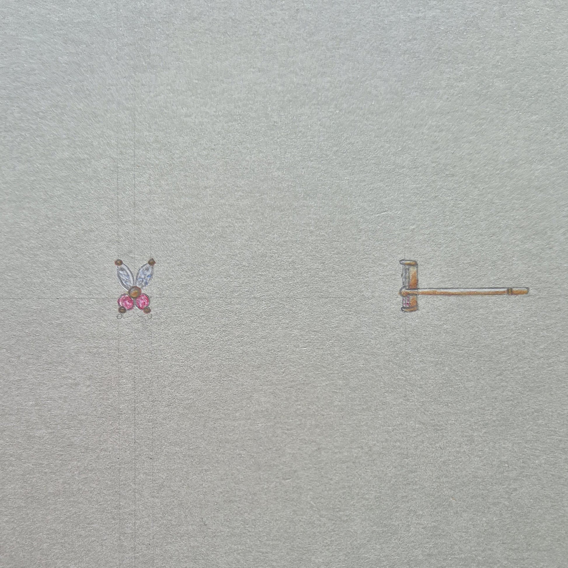 In each Earring: 2 x Marquise LG Diamonds 3 x 1.5mm F colour and VS clarity and 2 x round LG Pink Diamonds 1.5mm